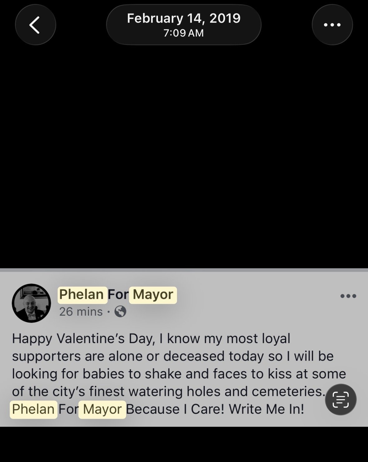 “Phelan for Mayor. Because I Care.”